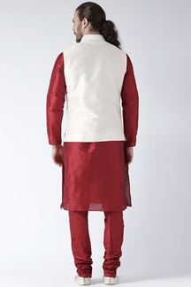 Attractive Maroon Colored Designer Kurta and Jacket Set