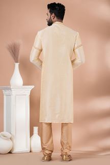 Awesome Cream Designer Men’s Kurta Pyjama for Engagement, Reception, Festivals, Sangeet, and Parties