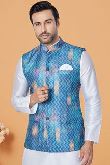 Classy White and Multi Designer Men’s Kurta Jacket Sets for Engagement, Wedding, Reception, Sangeet, and Party