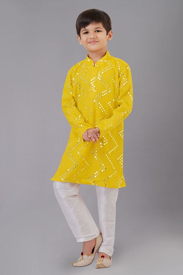 Dashing Yellow Designer Kid’s Kurta Pajama for Haldi, Reception, Festivals, Sangeet, and Parties