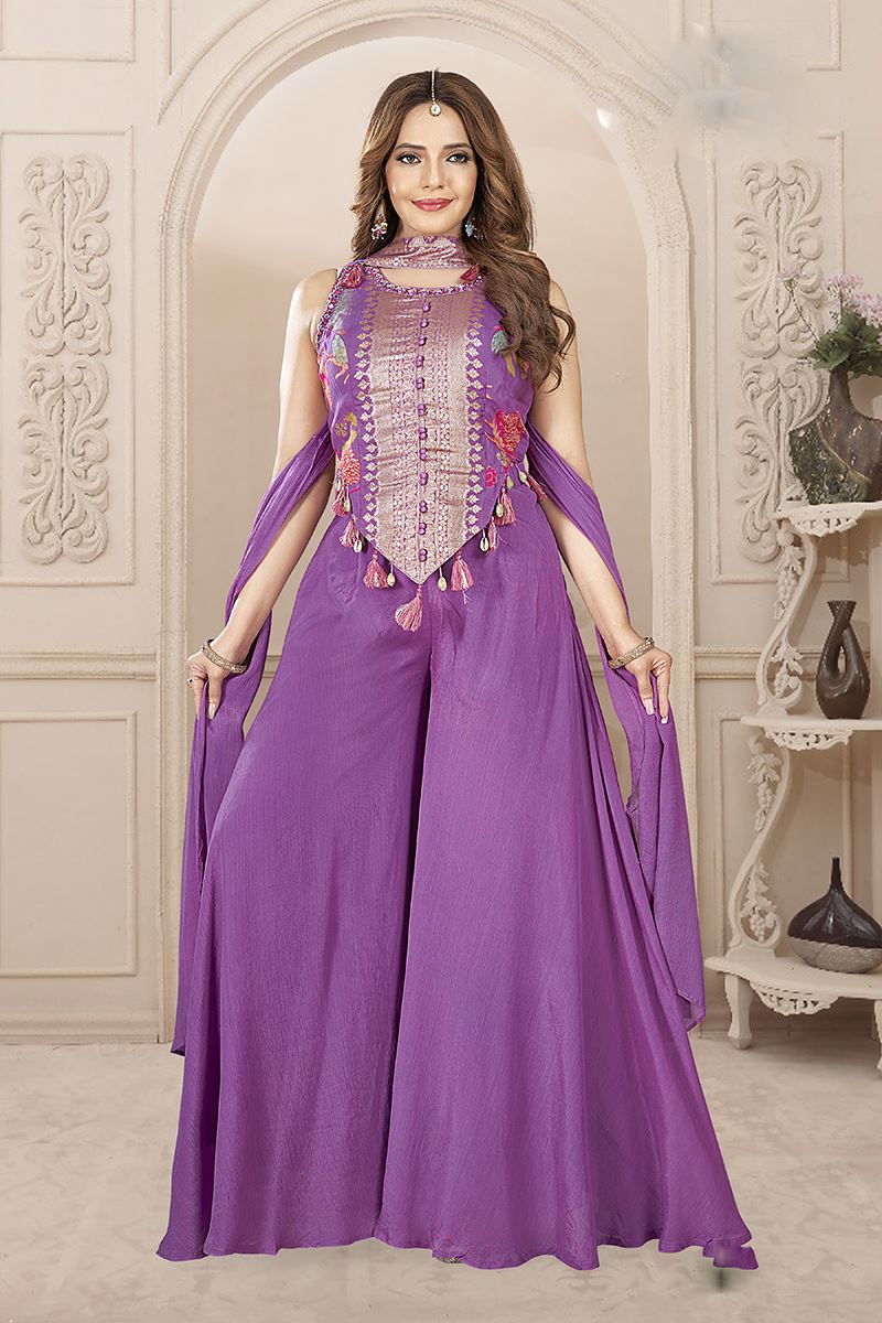 Delightful Purple Designer Palazzo Suit for Engagement and Reception