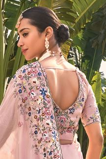 Lift your style quotient with this divine Light Pink colored designer saree. Order this saree which is made of Pure Banarasi Silk fabric and is beautifully crafted with Heavy Thread, Moti Embroidery, Mirror with Zarkan and Lace Border Work. Pair this saree with ethnic jewellery and a pair of heels to elevate your style. This saree comes with a matching, Banarasi Silk blouse fabric. Note slight color variation may be possible due to the digital photography. Accessories shown in the image is for photography purpose.
