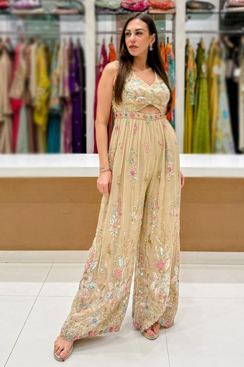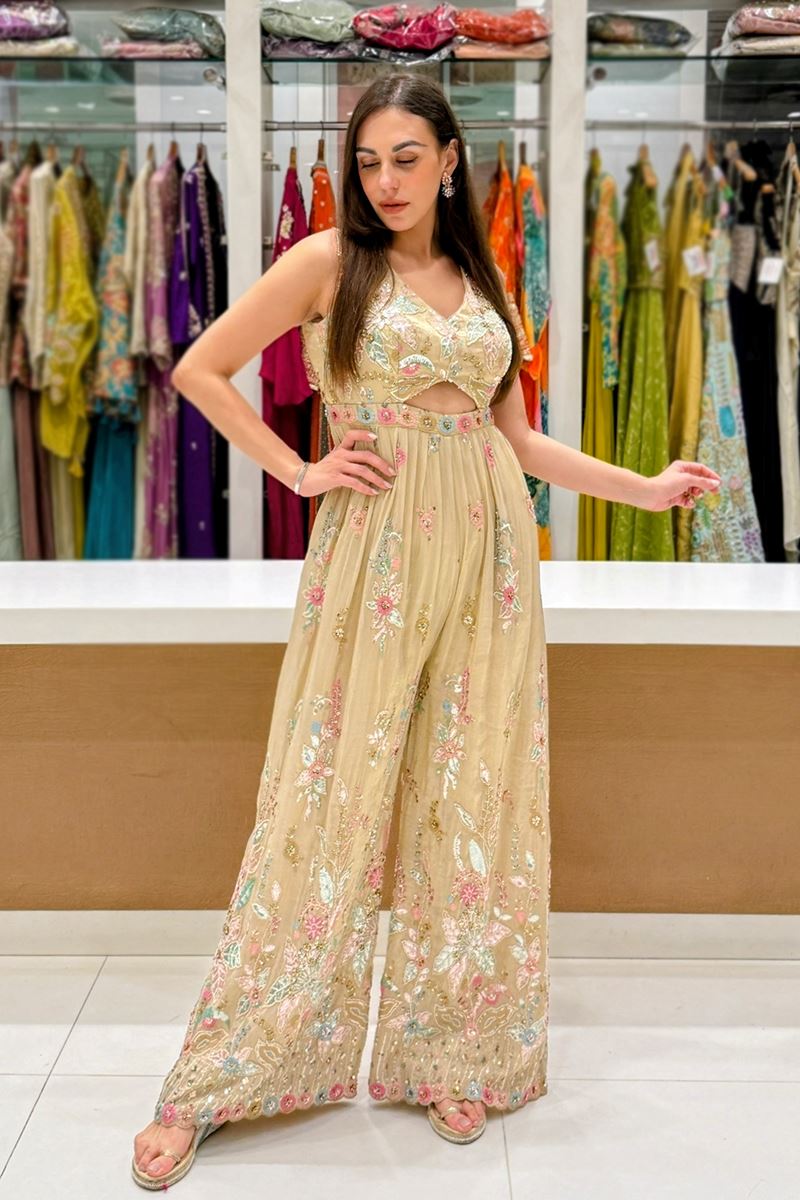 Be the starlight of any event with this beautiful Ivory designer indo-western outfit. Shop online for this attire crafted from Georgette fabric, which features Embroidery Work. Enhance your ensemble with ethnic jewelry and a pair of heels for a sophisticated touch. Please be aware that slight color variations may occur due to digital photography, and the accessories shown are only for illustration.