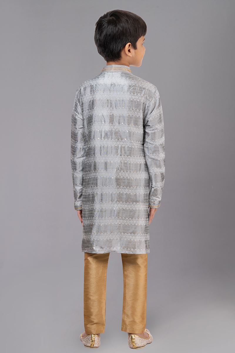 Spectacular Grey Designer Kid’s Kurta Pajama for Engagement, Reception, Festivals, Sangeet, and Parties