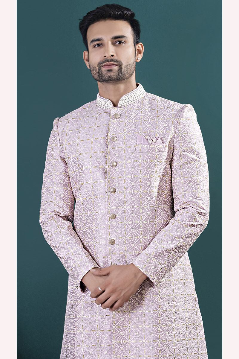 Attractive Lavender Designer Men’s Indo-Western Sets for Engagement and Reception