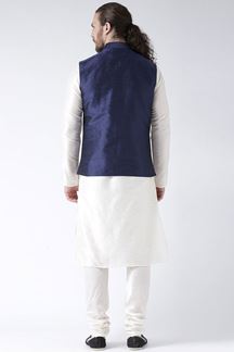 Get Ready for Traditional events with White Colored Designer Kurta and Jacket Set. This Kurta is made from Art Dupion fabric. Team it with brooch and mojaris to elevate your style. This Kurta is accompanied with matching Pyjamas and Jacket. These Pyjamas and Jacket are made of Art Dupion fabric. This Kurta can be customized into a bigger size at an added cost. Note: Color may slightly vary due to digital photography.