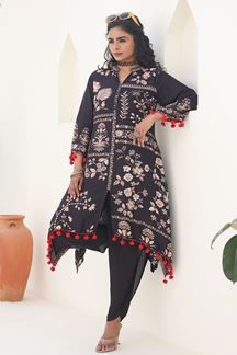 Keep ahead in style and design with this alluring Blue designer A-Line kurti. Buy this kurti crafted from Dola Silk fabric, which features Floral Printed Work. Enhance your ensemble with ethnic jewelry and a pair of heels for a sophisticated touch. The kurti comes with a matching tulip pant made from Crepe fabric. Please be aware that slight color variations may occur due to digital photography, and the accessories shown are only for illustration.