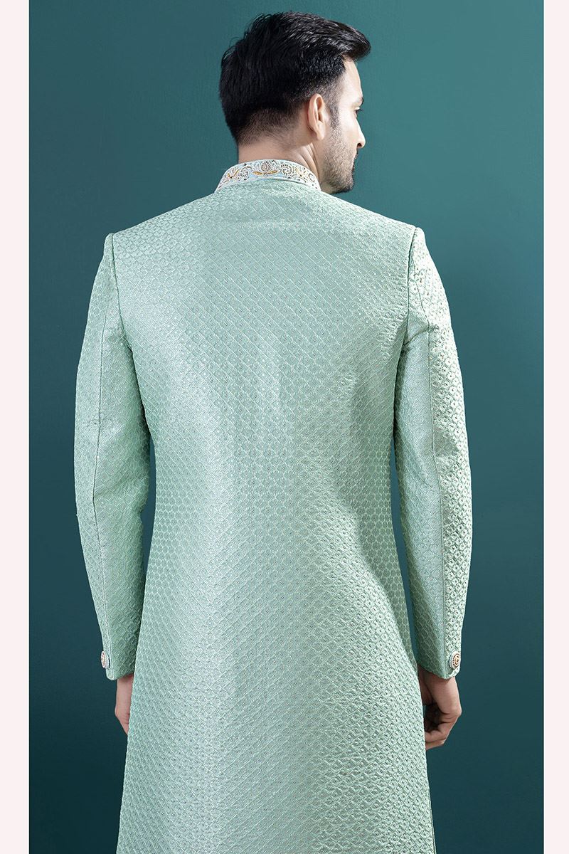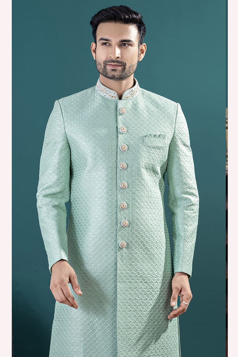 Fancy Aqua Green Designer Men’s Indo-Western Sets for Engagement and Reception