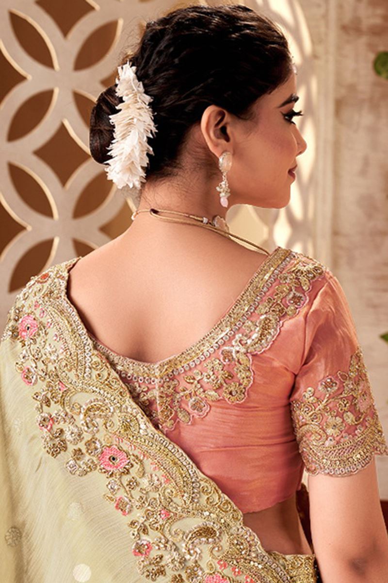 Get praised for your beauty and charm with this Beige colored designer saree. Shop online for this saree which is made of Viscose Silk fabric and is beautifully crafted with Jacquard Butti, Resham, Zari, Sequin, Beads Embroidery with Stone and Lace Border Work. Pair this saree with ethnic jewellery and a pair of heels to elevate your style. This saree comes with a Peach colored, Banglori Silk blouse fabric. Note slight color variation may be possible due to the digital photography. Accessories shown in the image is for photography purpose.