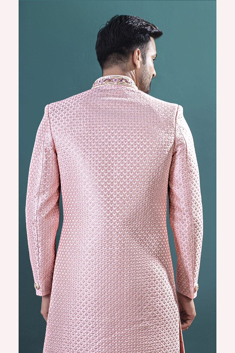 Marvelous Peach Designer Men’s Indo-Western Sets for Engagement and Reception