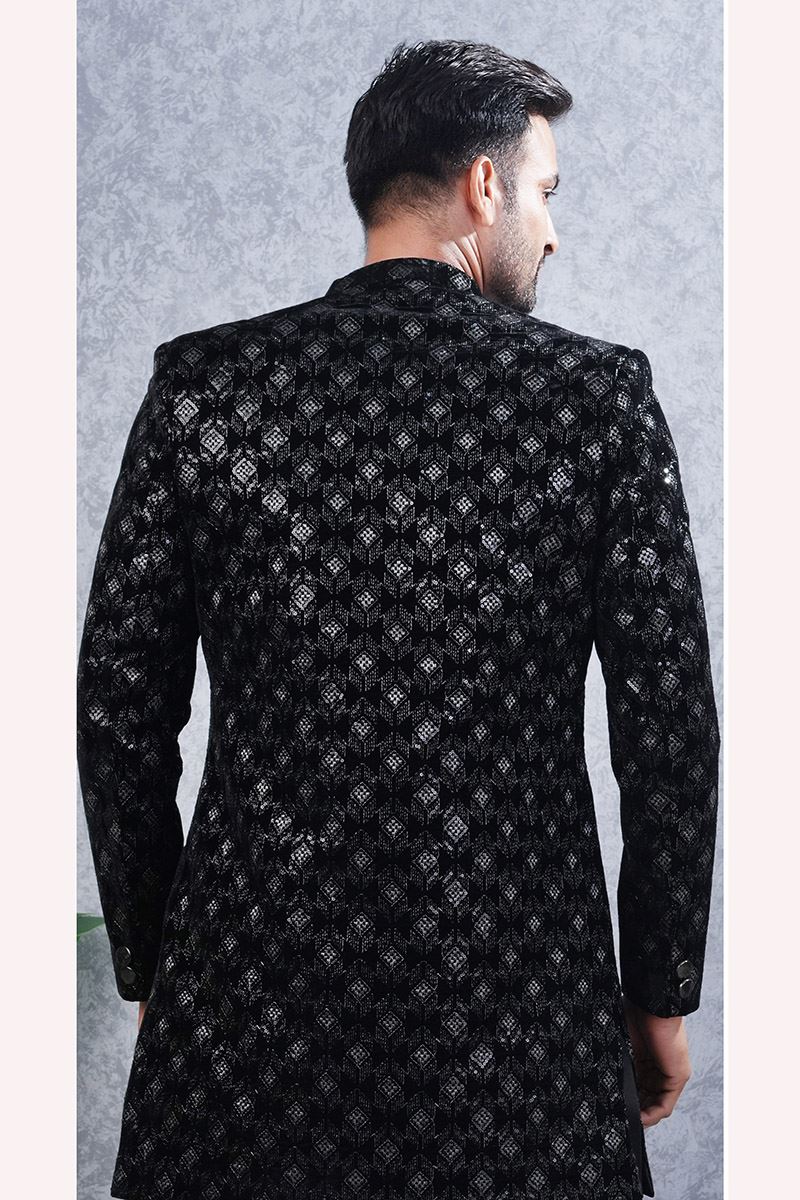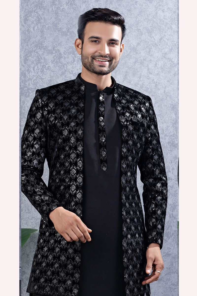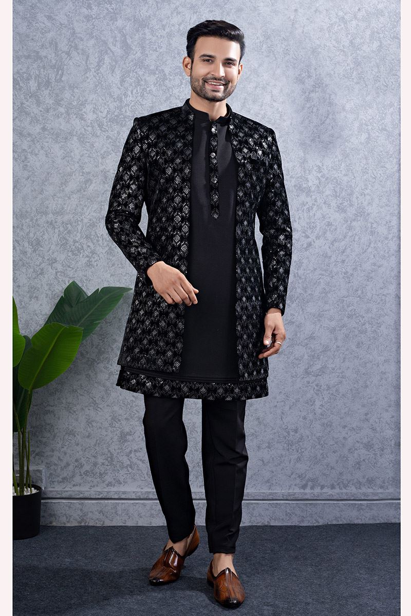 Stylish Black Designer Men’s Indo-Western Sets for Engagement and Reception
